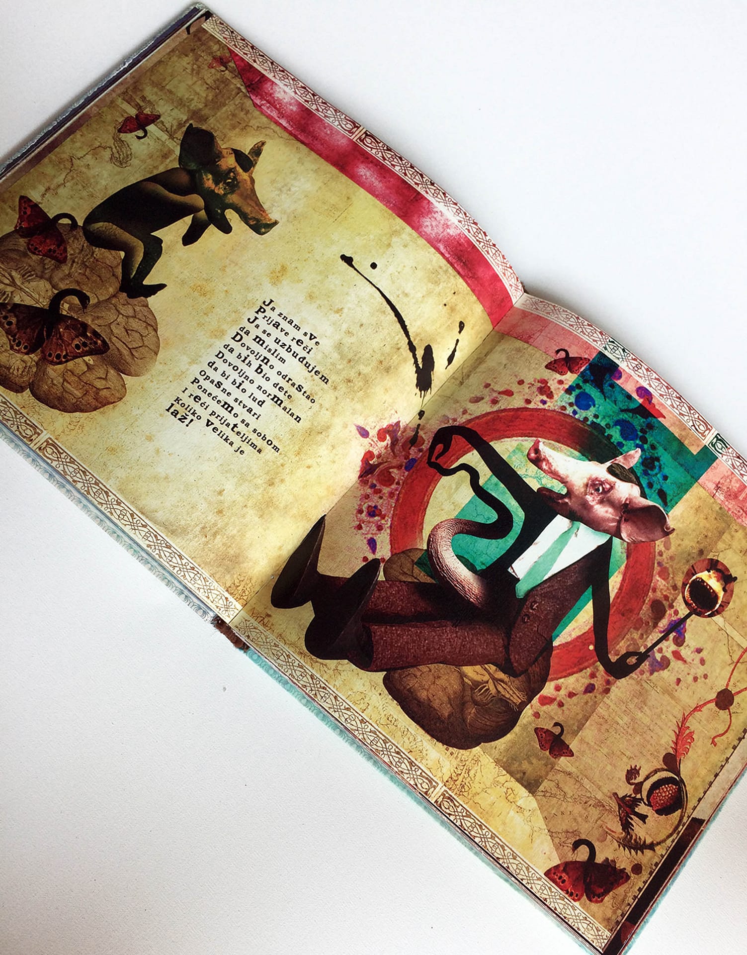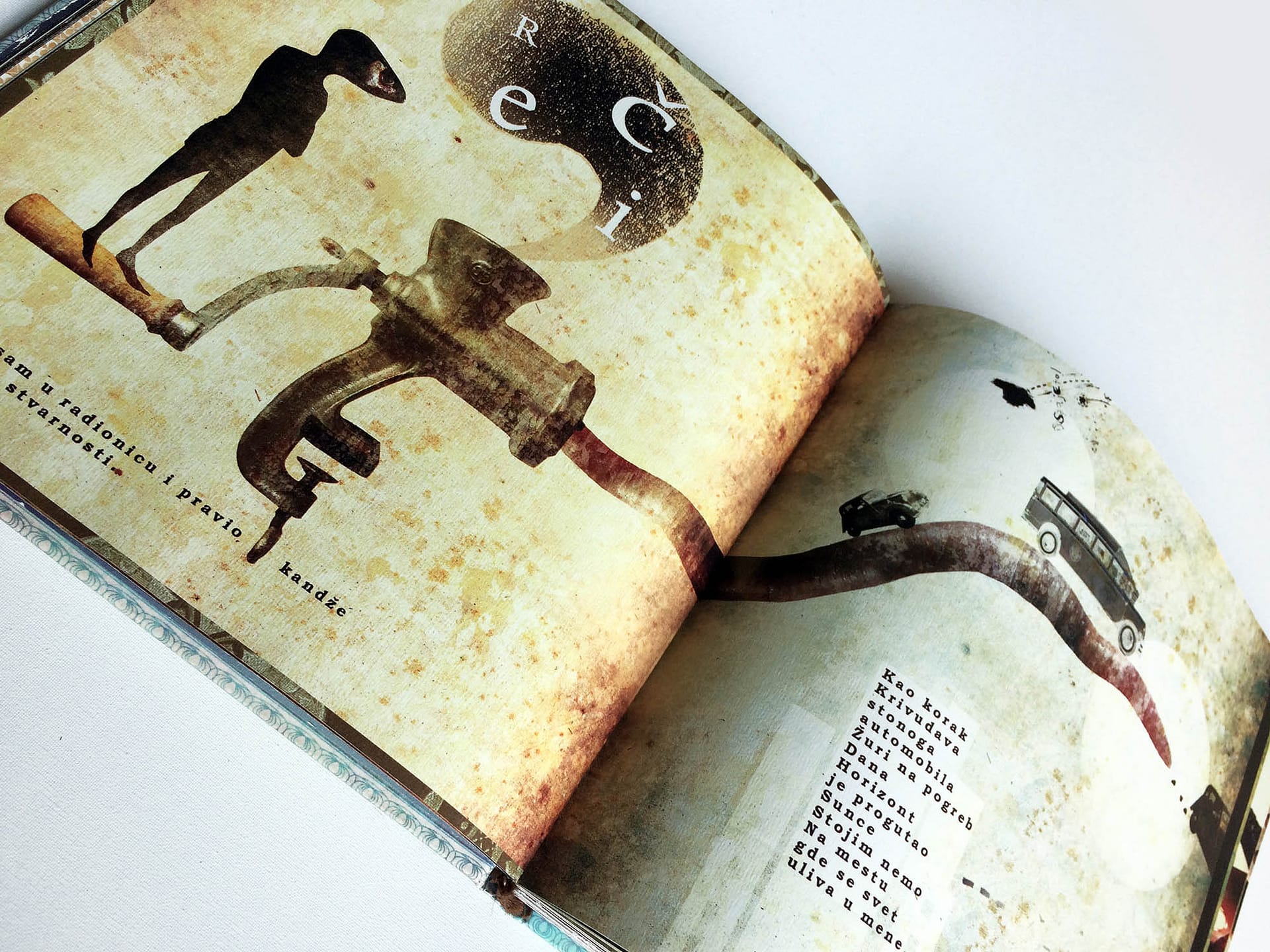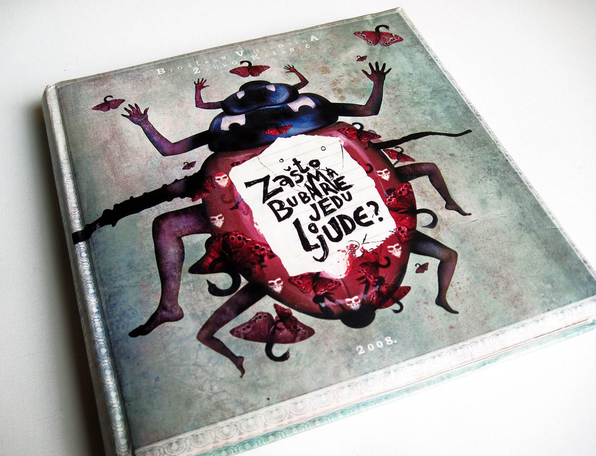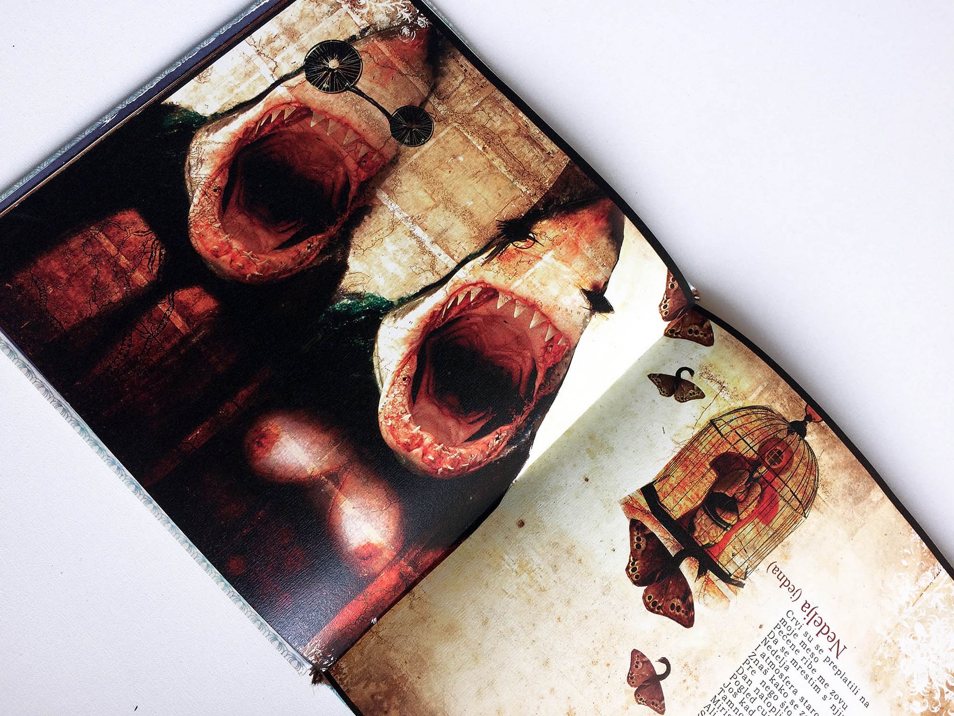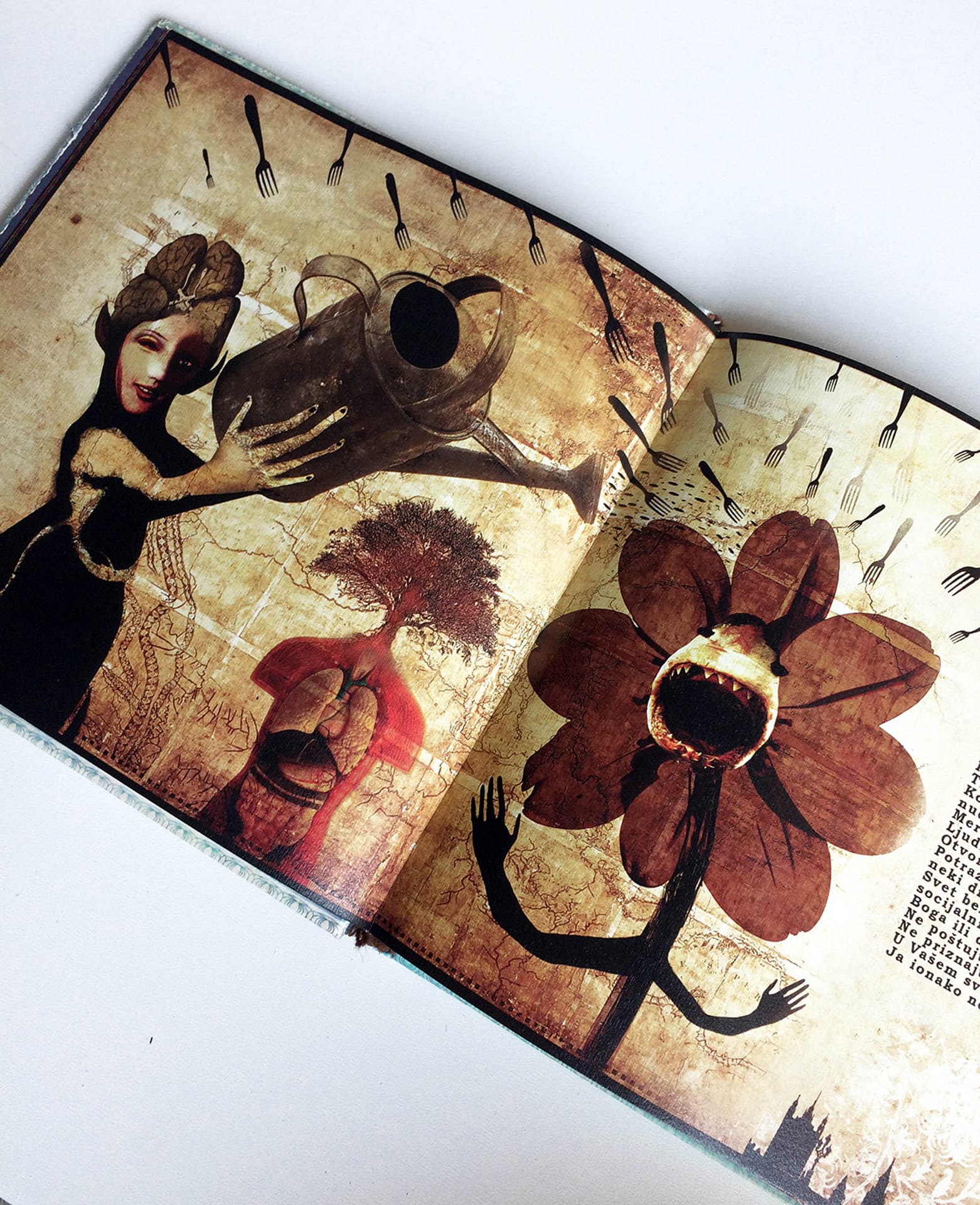 I was experimenting with the dark but still poetic irony and criticism, keeping the viewer on the surreal and narrative ground, where a major part of the characters simply reflects us – humans in an eternal struggle with life and existence. This book was created during two years of my (MFA studies) at the Academy of Arts Novi Sad – department of graphic design and illustration.