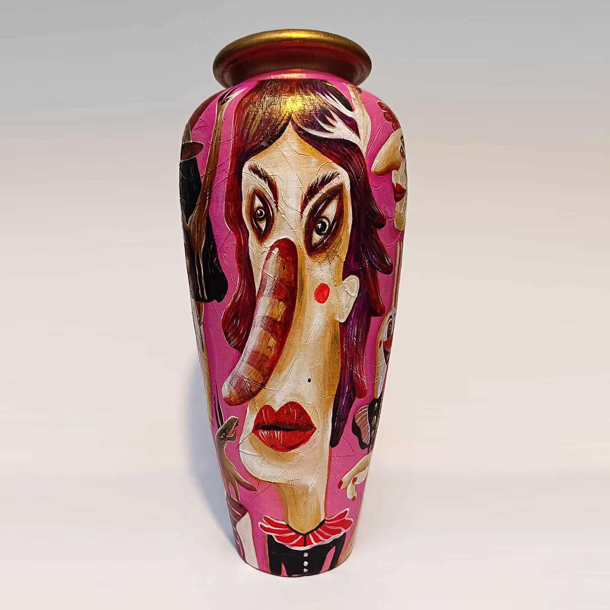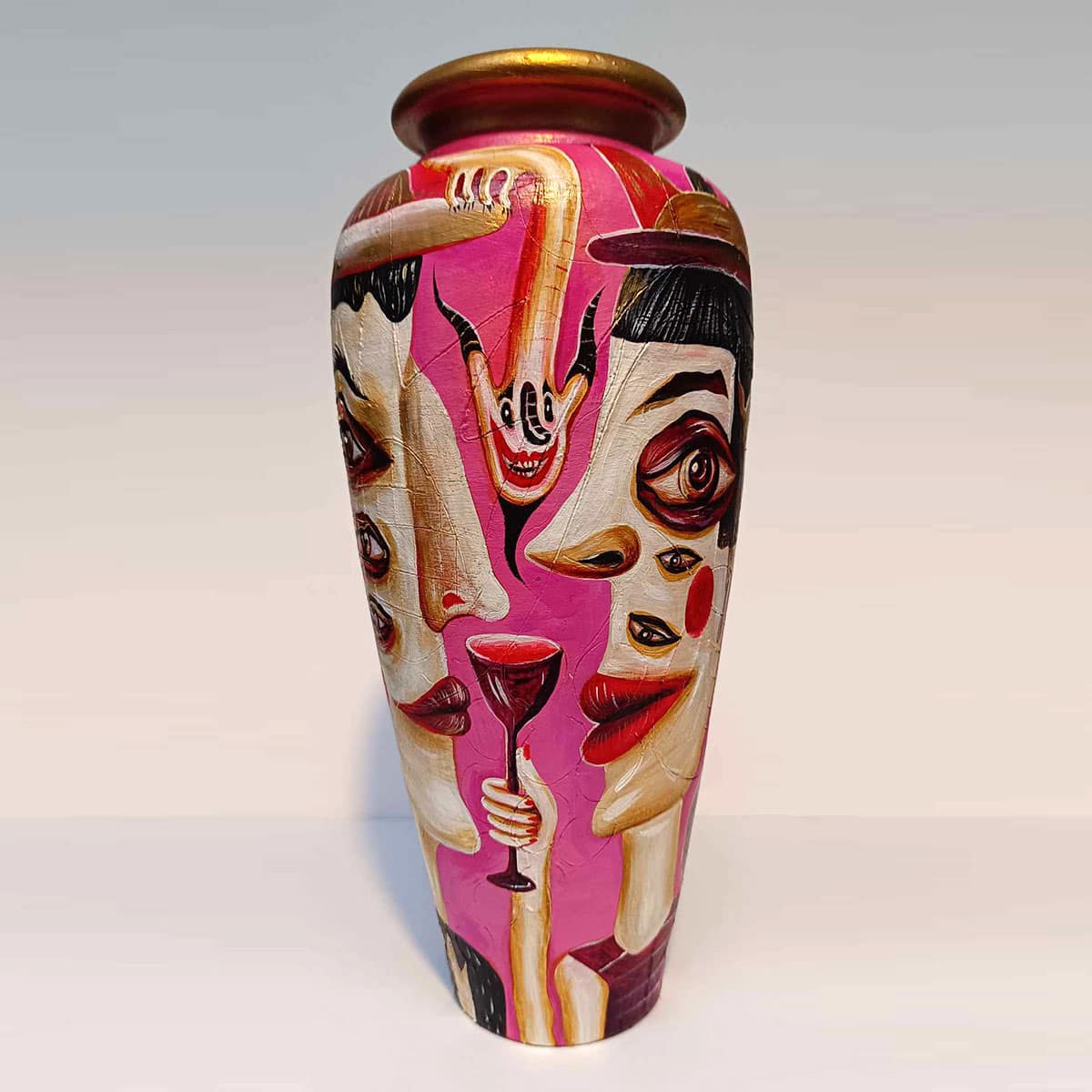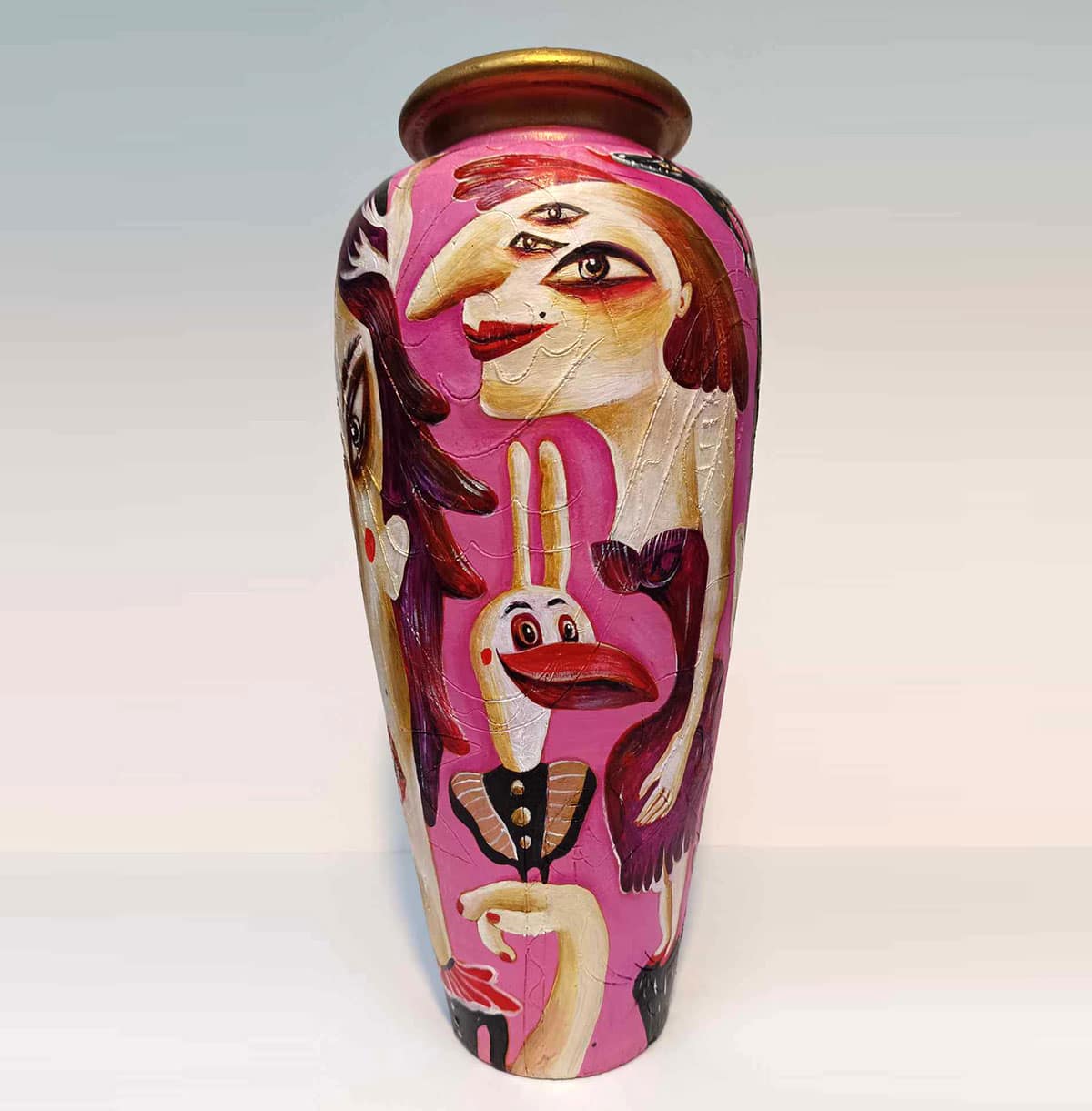 It’s been a blast unleashing my wild imagination on these reclaimed vessels — a little magic, a little mischief, and a whole lot of fun! “Painting follows the form” is the motto of this series. It explores the association between two-dimensionality and three-dimensionality, extracting paintings from the canvas—transforming them from seemingly flat surfaces into lively entities. My goal is to infuse playfulness and experimentation, spanning the commercial and fantastical realms. Bridging the gap between practicality and wonder, this series blurs the lines between art, decoration, and design!