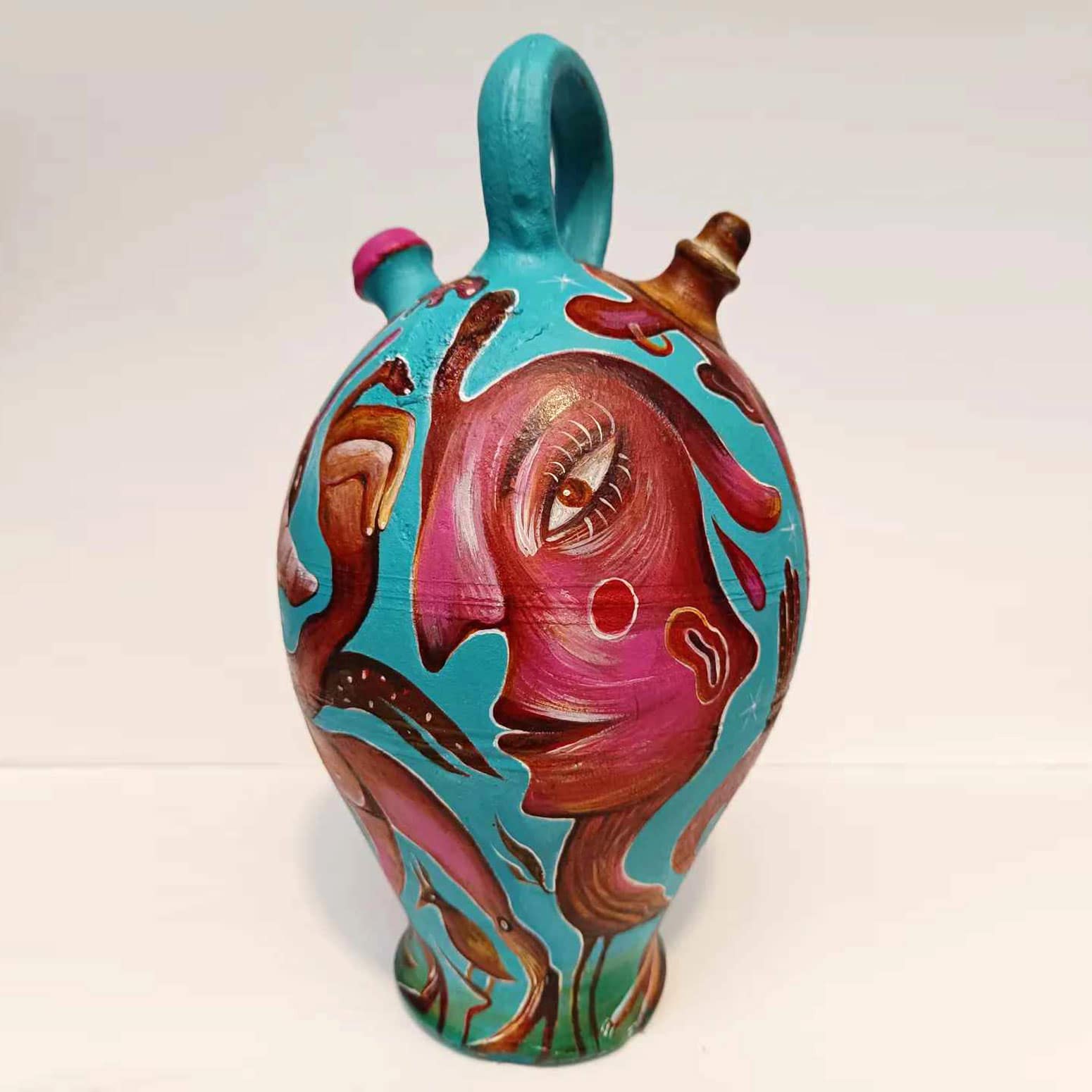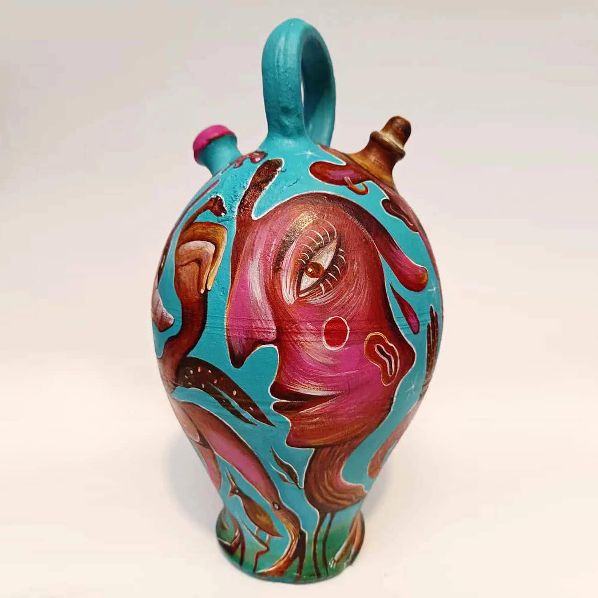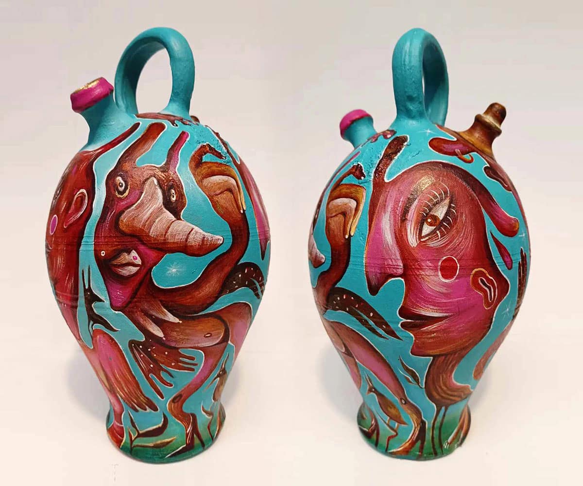 It’s been a blast unleashing my wild imagination on these reclaimed vessels — a little magic, a little mischief, and a whole lot of fun! “Painting follows the form” is the motto of this series. It explores the association between two-dimensionality and three-dimensionality, extracting paintings from the canvas—transforming them from seemingly flat surfaces into lively entities. My goal is to infuse playfulness and experimentation, spanning the commercial and fantastical realms. Bridging the gap between practicality and wonder, this series blurs the lines between art, decoration, and design!
