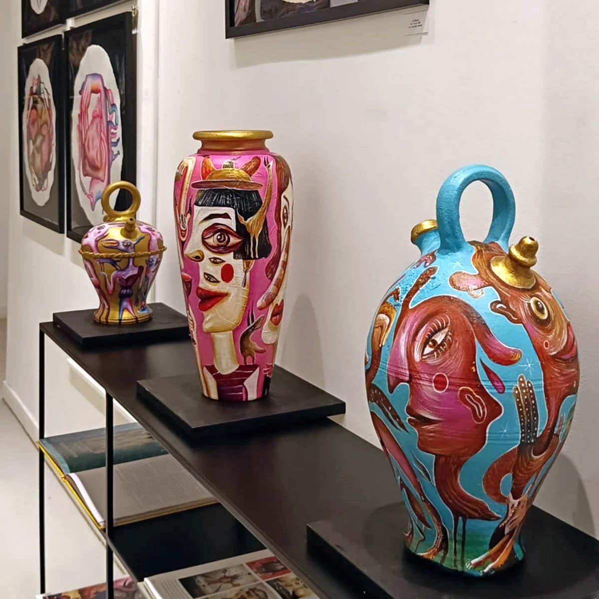 Step into the wild world of the “Fantastic Fauna” series, a collection where quirky creatures come to life on selected handmade vases and jars. These playful pieces transform recycled ceramics into a canvas for my mischievous monsters to dance, prowl, and party in golden splendour. Each stroke of paint breathes new life into these objects, turning them into vibrant, one-of-a-kind treasures brimming with character and whimsy.