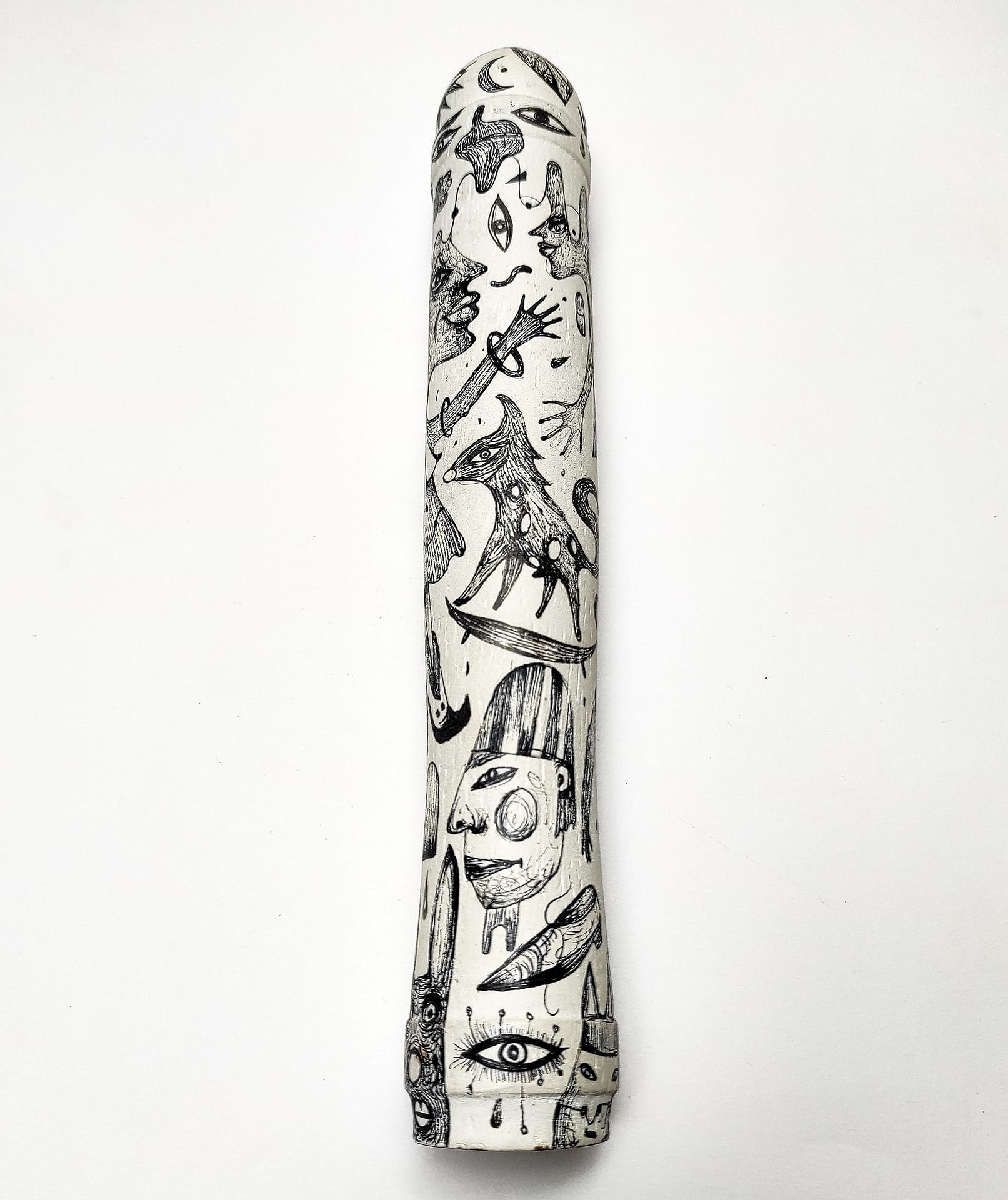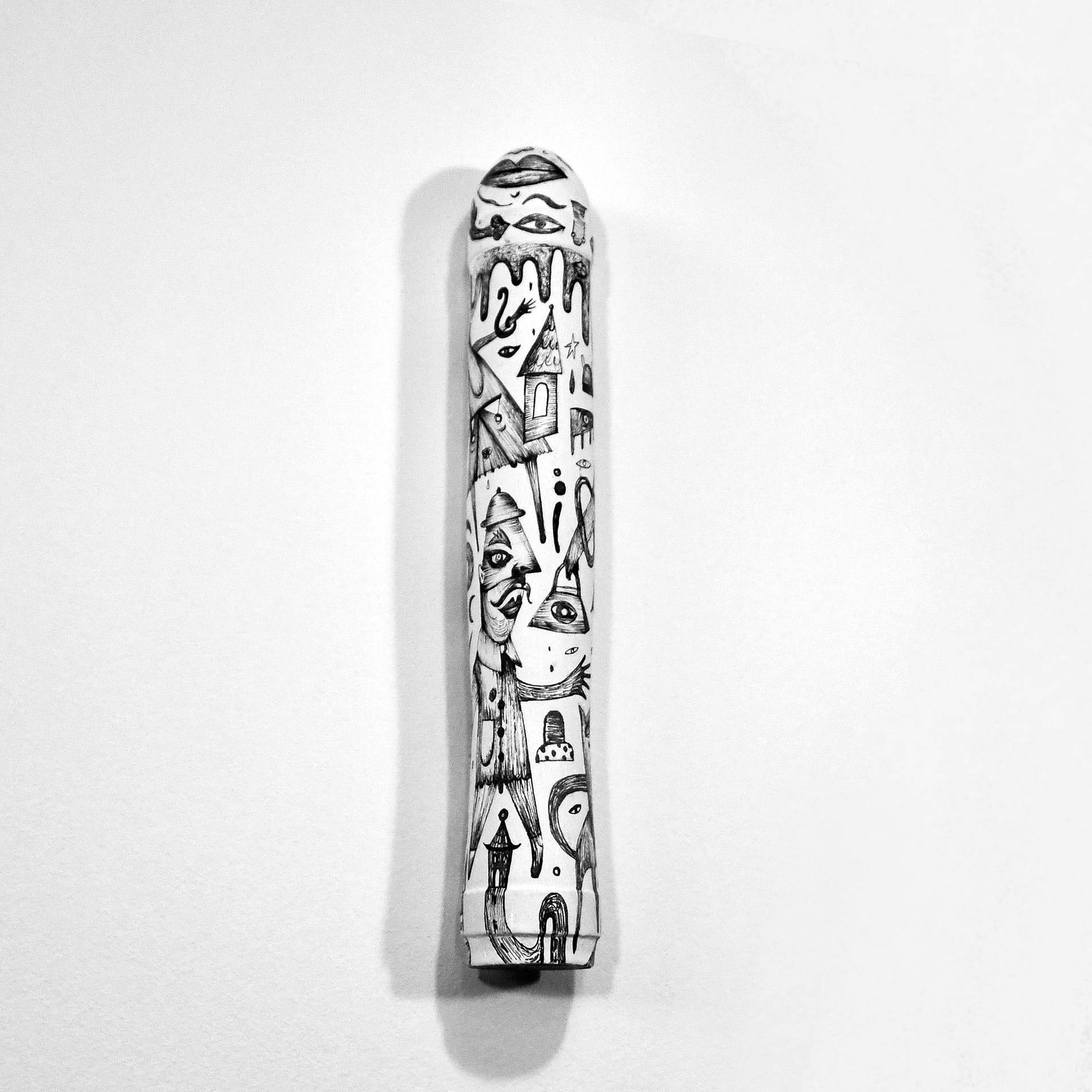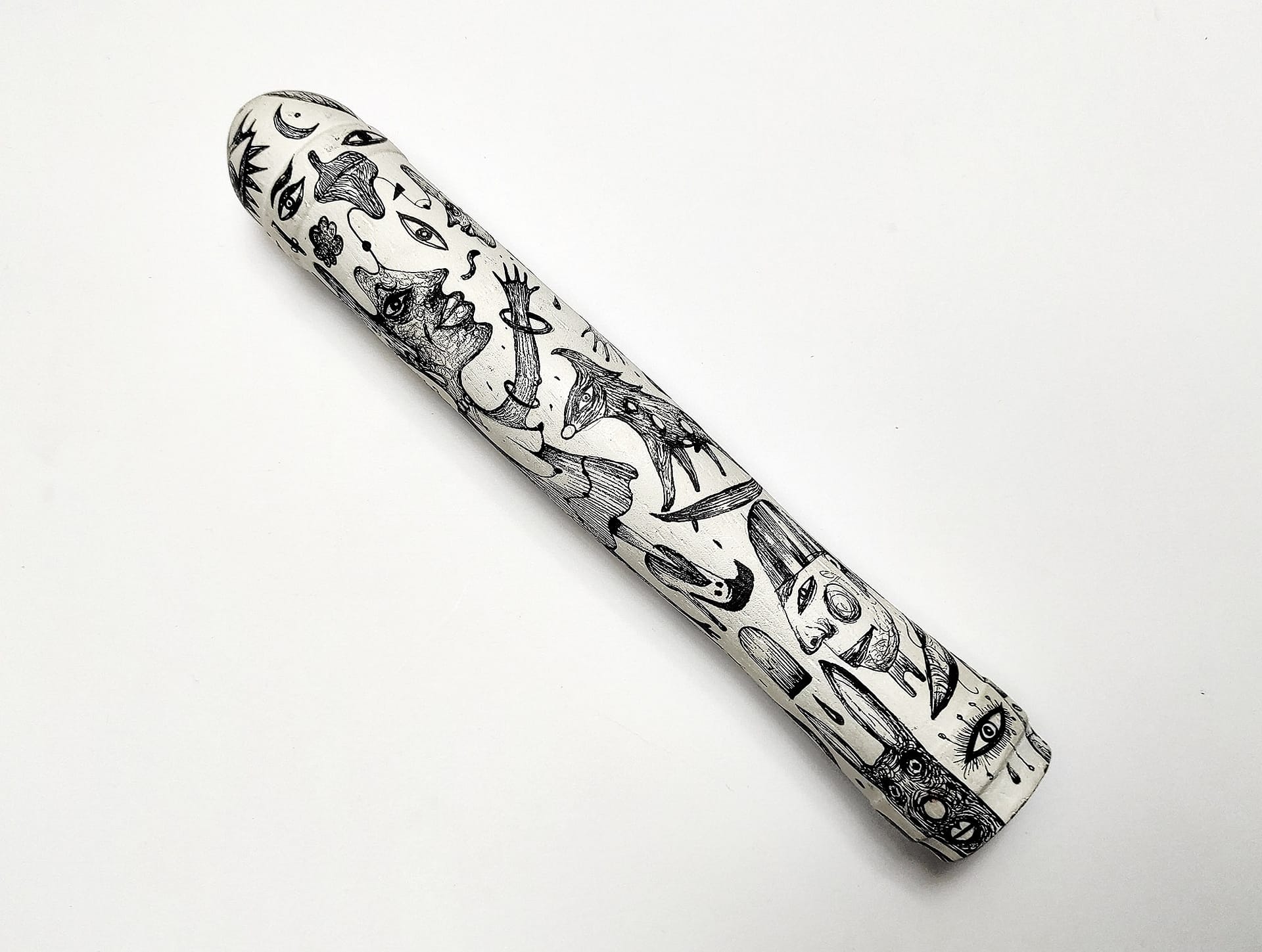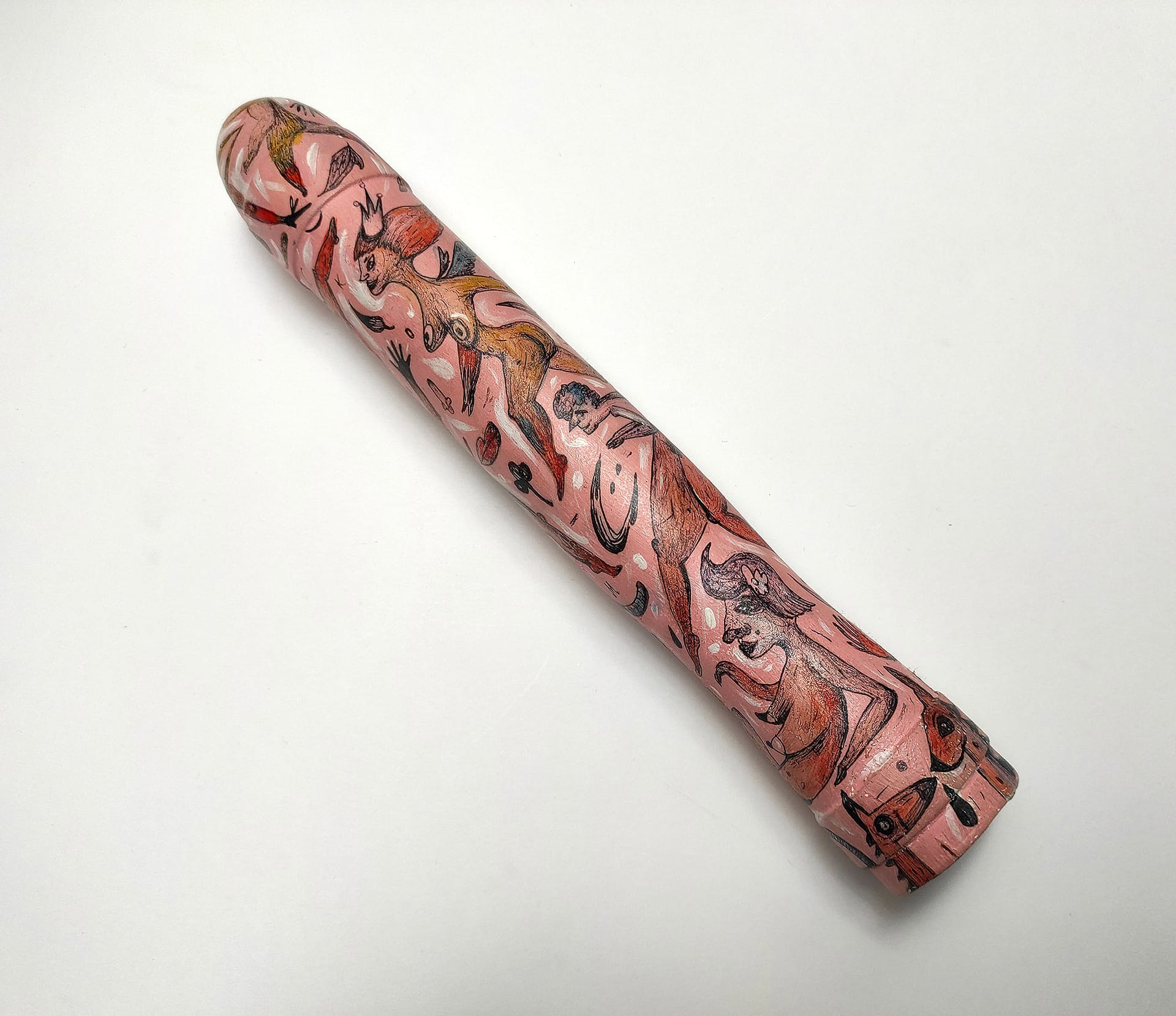 These hand sculpted and painted phallus sculptures represent objects that celebrate human freedom, even as they provoke us to acknowledge how unfreely we actually live – how we conspire with society to keep ourselves from satisfying our natural desires. It is a seductive work that exemplifies, even as it studies, the playful perversity of human desire.