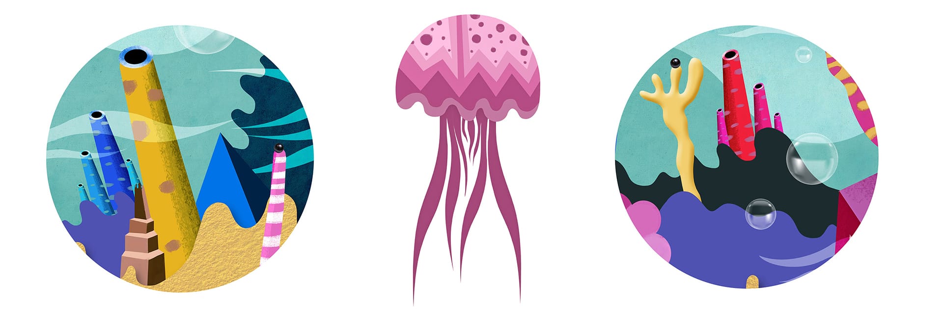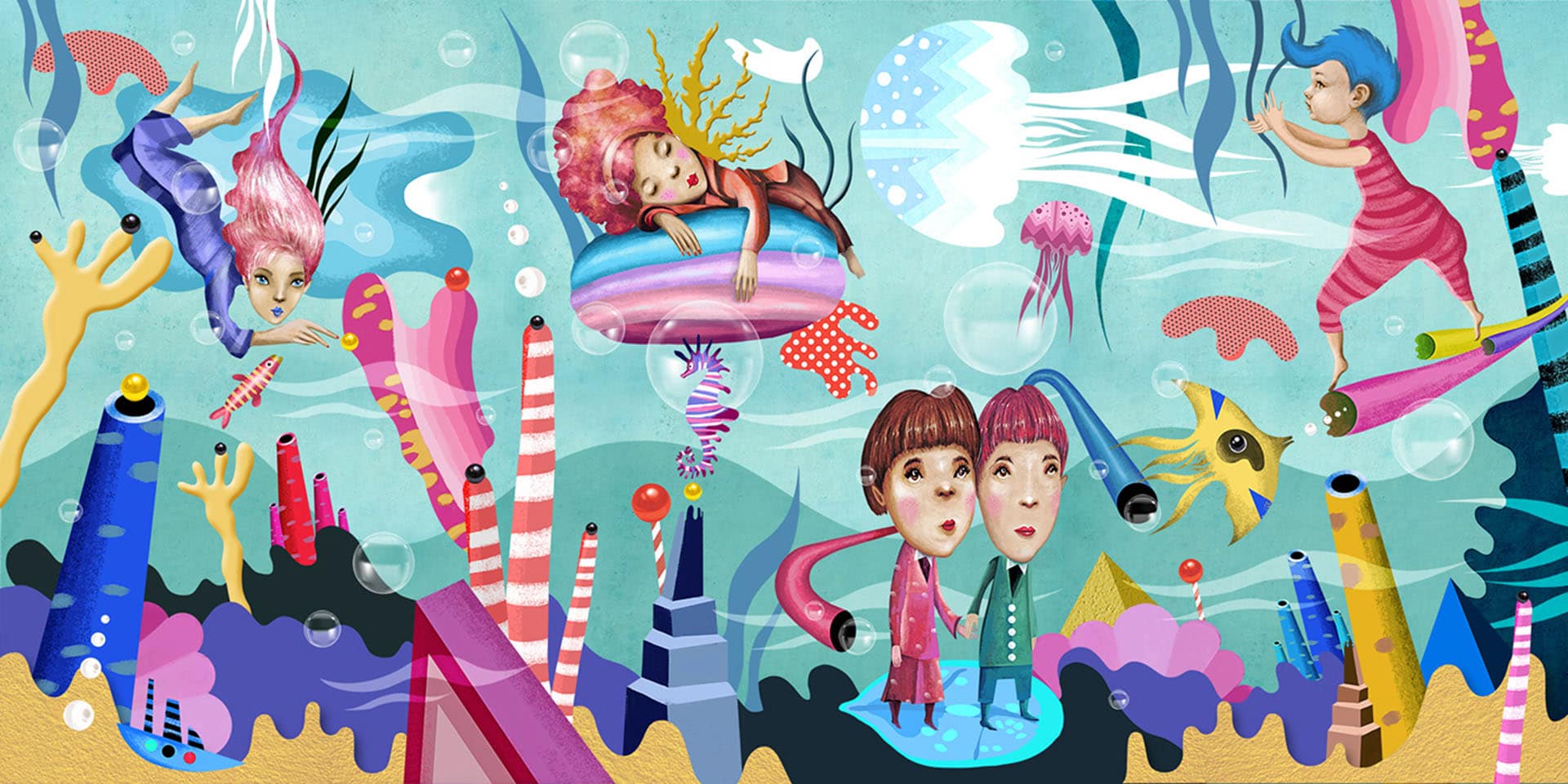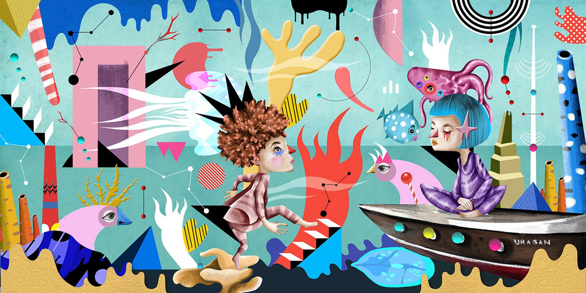 The project was created on the occasion of “Rijeka, city of culture 2020”. Series of Illustrations commissioned by the creative agency “Benussi & the fish” for the pop-up installation named “Uragan” ship. Illustrations I have created are being part of this innovative installation, a contemporary playground for children in the Croatian town of Rijeka, build around the reconstructed steamship “Uragan” on the docs of the town harbor.